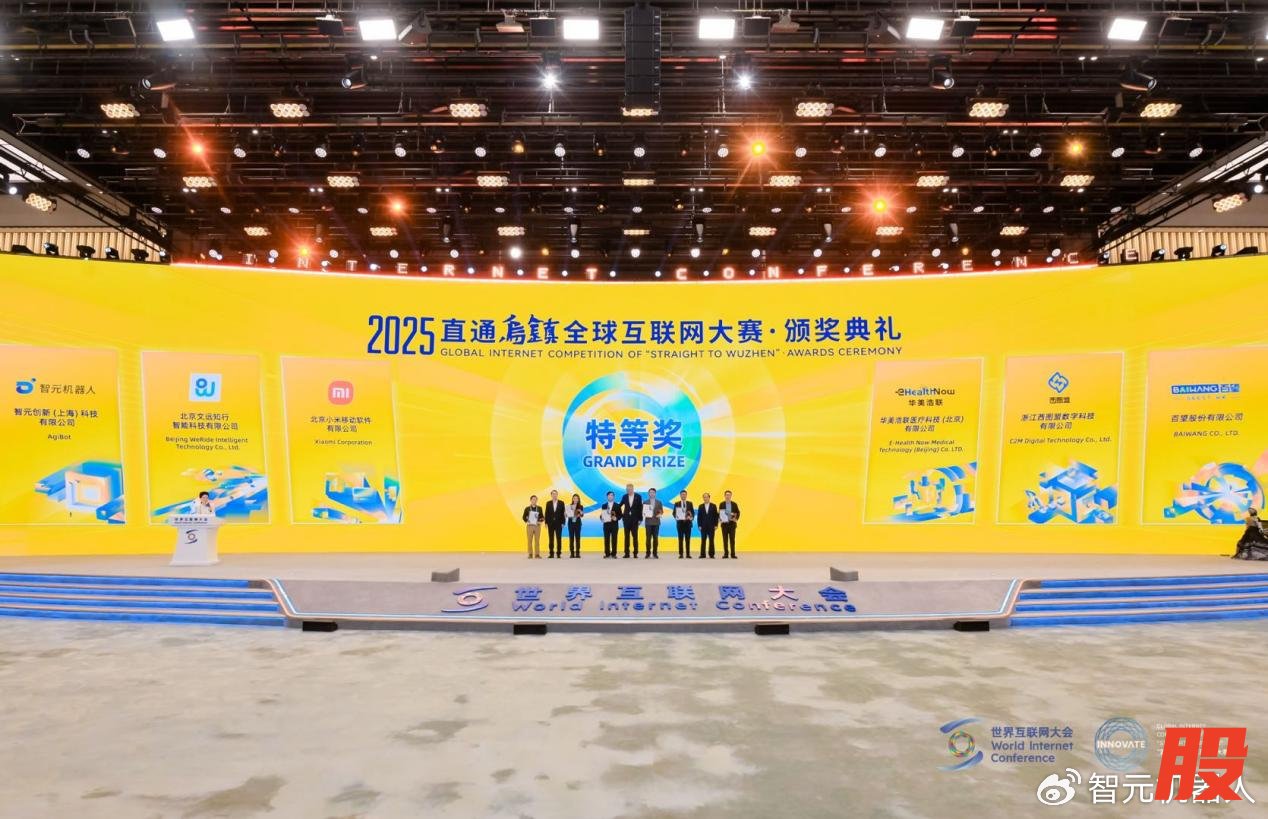 11月9日,2025“直通乌镇”全球互联网大赛颁奖典礼在浙江乌镇举办。本次大赛是世界互联网大会乌镇峰会的亮点活动之一,由世界互联网大会、浙江省人民政府主办,旨在推动全球互联网合作创新,为数字经济蓬勃发展贡献力量。智元机器人凭借其开源的具身智能操作系统参考框架“灵渠OS”,荣获2025“直通乌镇”全球互联网大赛的人工智能赛道特等奖。中国国家互联网信息办公室副主任王京涛,世界互联网大会秘书长任贤良,浙江省委常委、宣传部部长赵承为智元机器人颁奖。